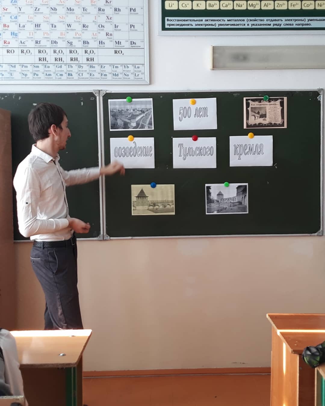 15.11.2019В 2020 году Тульский кремль празднует 500-летие. Эта крепость защищала южные границы Московского княжества от ордынских набегов и была главным звеном знаменитой Большой Засечной черты. Празднование 500-летия Тульского кремля является знаковым событием для всей России.Именно поэтому с целью довести до учеников значение Тульского кремля и Засечной черты в истории становления Российского государства учитель истории Алиев И. Х-А. провел музейный час истории в параллелях 6-ых классах на тему: "500 лет возведение Тульского кремля".