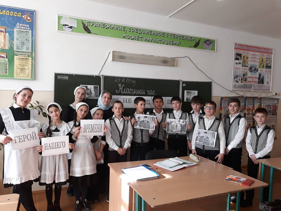 03.12.201903.12.2019г.В целях укрепления духовных ценностей, сохранения памяти о героическом прошлом классный руководитель 6"а" класса Яхъяева З.А.провела классный час "Герои Отечества: прошлое и настоящее". Зарема Абумуслимовна рассказала детям об истории возникновения праздника День Героя Отечества, о подвигах народа, провели беседу на тему мужества и чести.