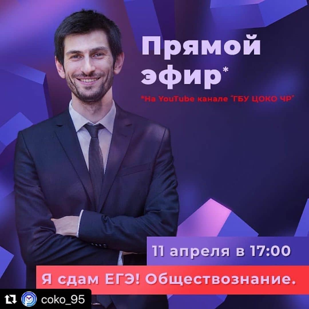 08.04.2020Дорогие друзья, мы продолжаем реализацию проекта «Я сдам ЕГЭ! Обществознание!". 11 апреля в 17:00 на YouTube канале «ГБУ ЦОКО ЧР» пройдет прямой эфир, в ходе которого абсолютный победитель Всероссийского конкурса "Учитель года России-2018", кавалер ордена КАДЫРОВА – Алихан Мавладиевич Динаев @amdinaev проведет консультацию на темы «Понятие власти», Государство, его функции» и «Политическая система» из блока «Политика». Друзья, остаемся дома, но время зря не теряем. Удачи!