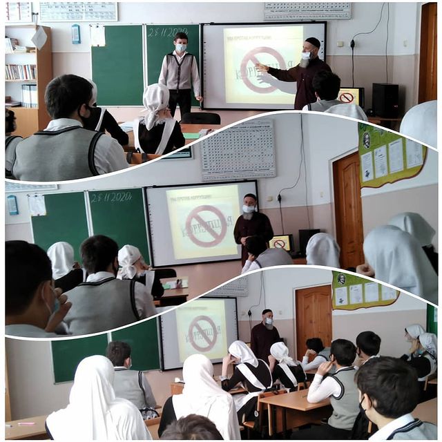 30.11.2020С целью формирования убеждения о неотвратимости наказания за коррупционные правонарушения; воспитания правовогог сознания и повышения правовой культуры учащихся педагог дополнительного образования по ДНВ Гумаков У.А. провел беседу с обучающимися 9 класса на тему: "Коррупция - Стоп!