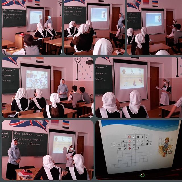 Классный руководитель Солсаева Э.Б. на классном часе "Все работы хороши" рассказала обучающимся 8 класса о профессиях разных, нужных и важных.