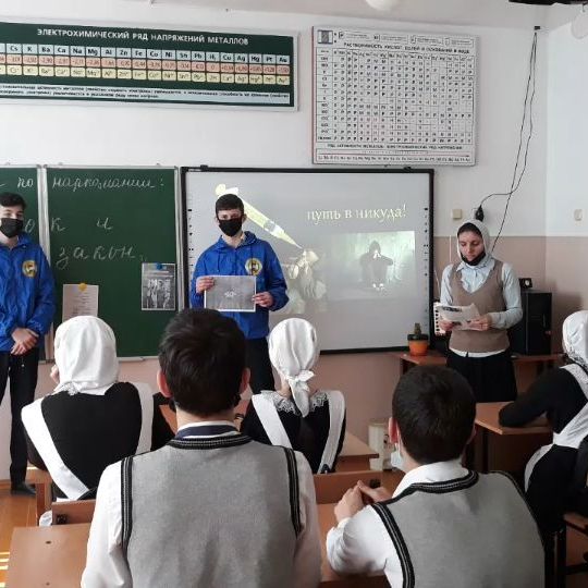 06.02.2021С целью воспитания здорового образа жизни, профилактики правонарушения и правового сознания учащихся классный руководитель Алиев И.Х-А. совместно с социальным педагогом Ахмадовой А.С. и активистами "Юные Кадыровцы" провели профилактическую беседу на тему: "Подросток и Закон. Профилактика правонарушения, употребление вредных веществ: наркомания, токсикомания".