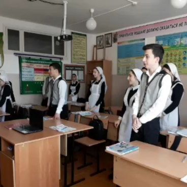 1 - 11 классов МБОУ "СОШ с.Чишки" начали 4 четверть с исполнения гимнов Российской Федерации и Чеченской Республики.