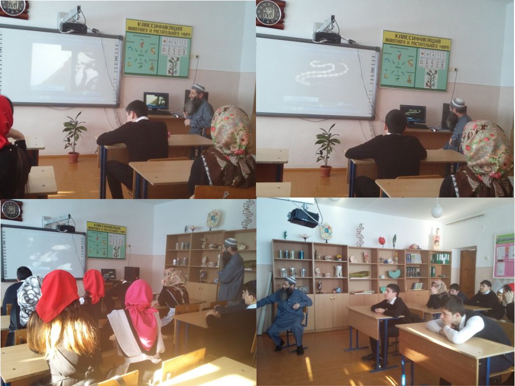 14.01.2017г. МБОУ СОШ с. Чишки с обучающимися 10 кл. провели беседу, с просмотром ролика про Кунта Хьажи Кишиева.