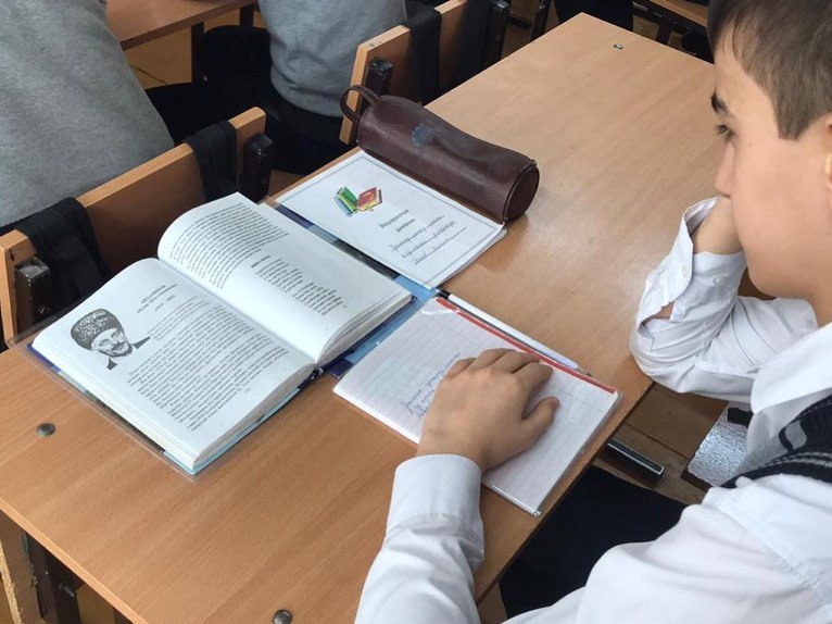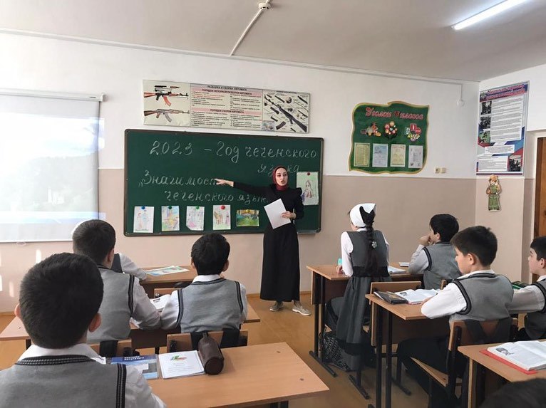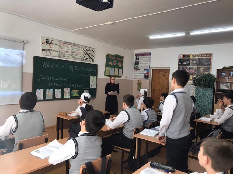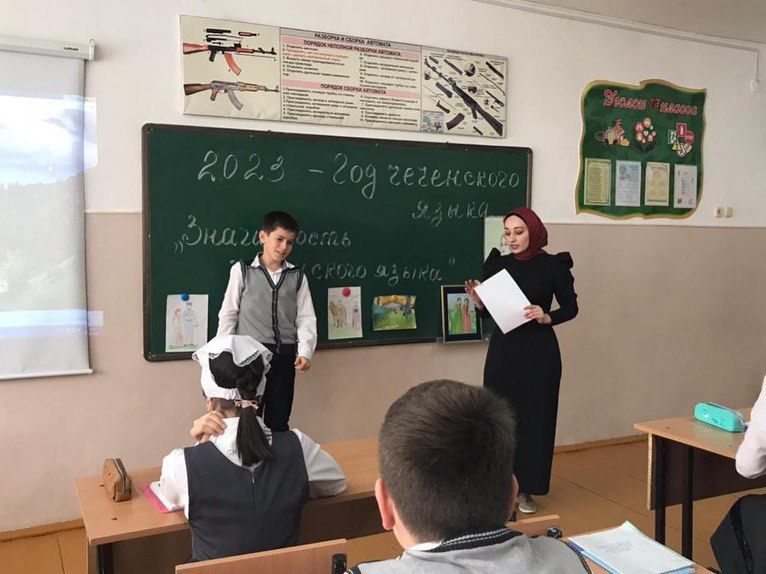 Эхаева Айнет Исаевна провела урок чеченской литературы в 6 классе, дети с учителем читали стихи А. Айдамирова. Айнет Исаевна напомнила учащимся, что 2023 год - признан годом Чеченского языка, выдала литературу на чеченском языке учащимся для чтения на выходных.