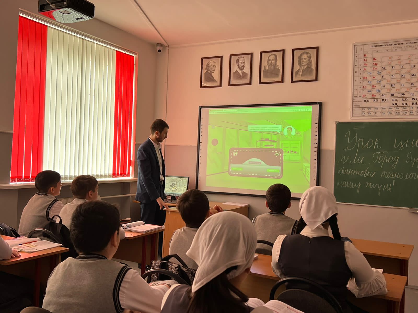 На этом уроке учитель физики Алиев И.Х-А. обучающимся 7а класса наглядно продемонстрировал тесную взаимосвязь всех квантовых технологий и их влияние на нашу жизнь: на повседневную логистику, медицину, финансовый сектор, информационную безопасность. Обучающиеся увидели познавательный фильм и на тренажерах попробуют ненадолго стать квантовыми физиками. Новый «Урок цифры» состоял из двух блоков: учебного фильма и тренажеров для младших, средних и старших классов. Главным героем фильма становится школьник на пороге выбора будущей профессии. Вместе с учеными он знакомится с ключевыми направлениями квантовой физики и областями применения квантовых технологий. В ходе прохождения игровых тренажеров учащимся предстояло решить серию заданий по работе с квантовыми симуляторами, использованию квантовых сенсоров для адресной доставки лекарств и передаче квантового криптографического ключа. Дети узнали о квантовой криптографии, квантовых сенсорах и квантовых симуляторах. О том, как они улучшают нашу жизнь, и кто в России сейчас занимается развитием технологий будущего. По итогам обучающиеся получили сертификаты с разными оценками. В завершении учитель физики Алиев И.-А. сказал: «Если вас заинтересует мир квантовой физики, вы сможете стать частью большой квантовой команды страны вступив в сообщество и сделать эту сферу науки своей будущей профессией».
