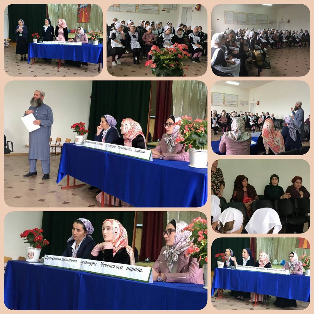 18.10.2017С целью сформировать представление девушек о нравственных нормах общения, привить нравственный иммунитет в период созревания личности; сформировать интерес к здоровому образу жизни 18.10.2017г. в актовом зале МБОУ "СОШ с. Чишки" Гумаков У. А. провел беседу с девушками на тему "Представительница культуры Чеченского народа".