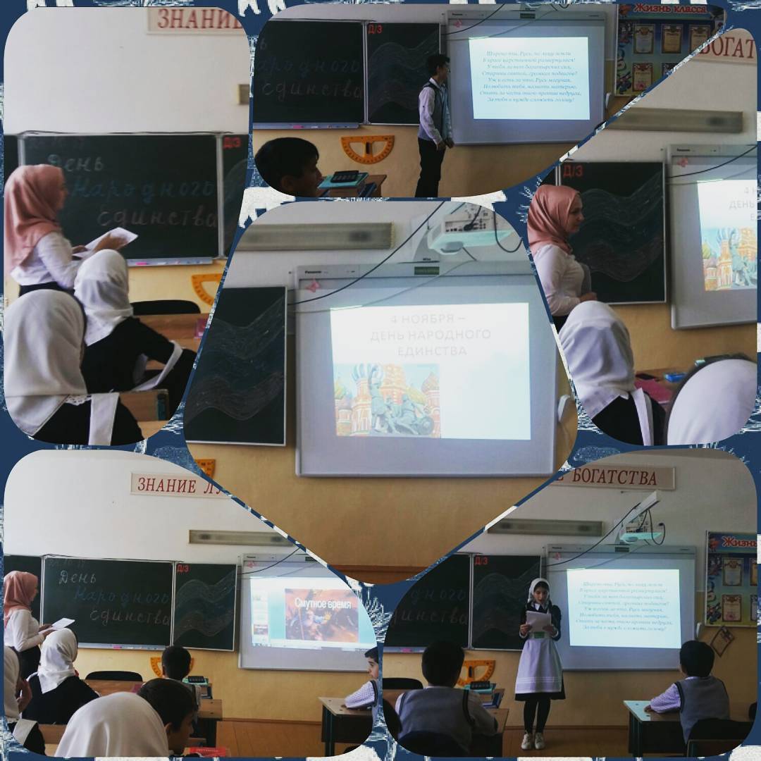Классный час "День Народного Единства " в 7 классе провела Хасанова Х. Ш.