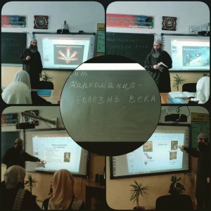 Педагог дополнительного образования по ДНВ Гумаков У. А. провел с обучающимися 11 класса беседу с презентацией "Наркомания - болезнь века".