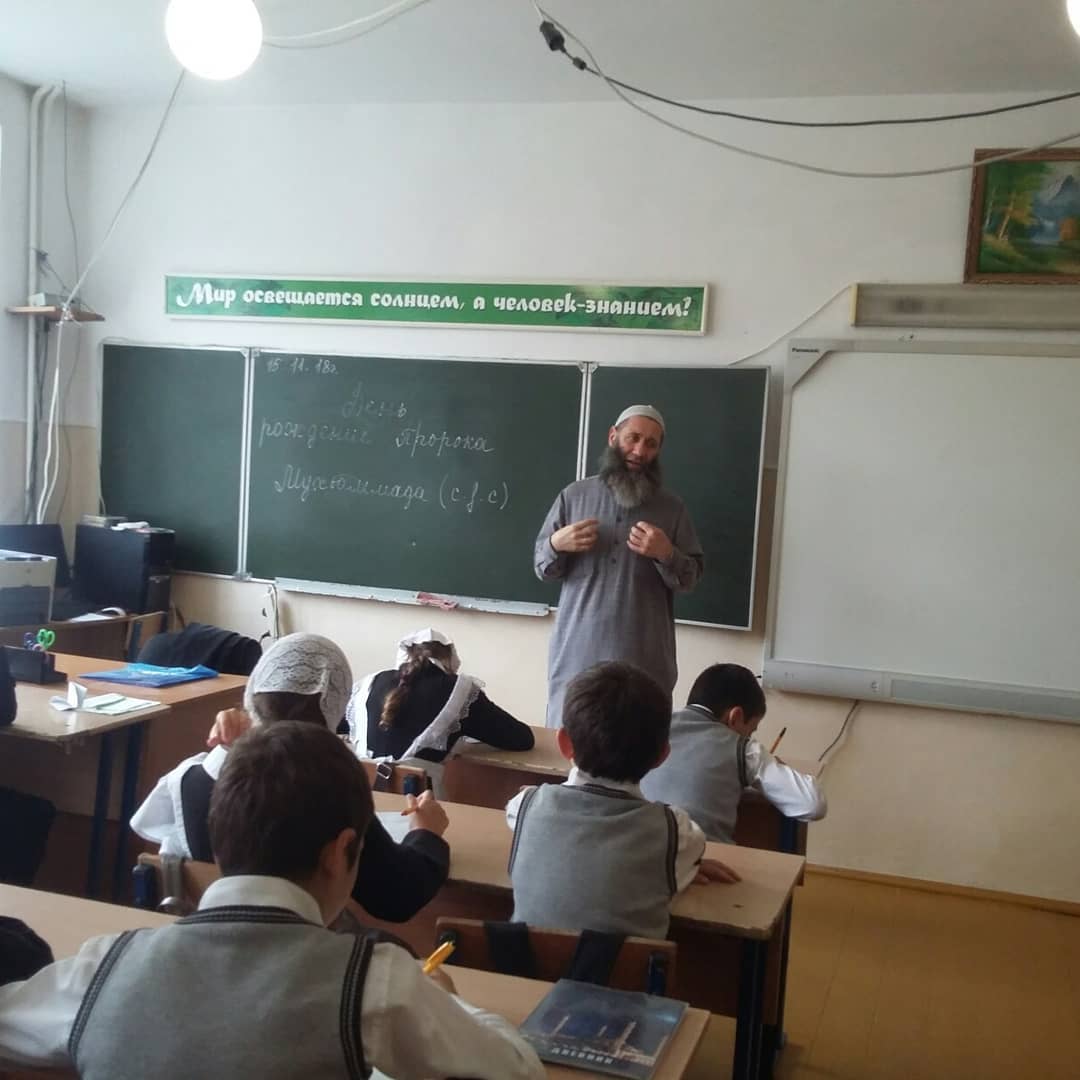 16.11.2018С целью привить любовь и уважение к Исламу, познакомить детей с историей рождения и ранним детством Пророка Мухаммада (мир Ему и благословение Аллаха) педагог по ДНВ Гумаков У.А. провел беседу с обучающимися 1-4 классов на тему "День рождение Пророка Мухаммада (С.А.С)"