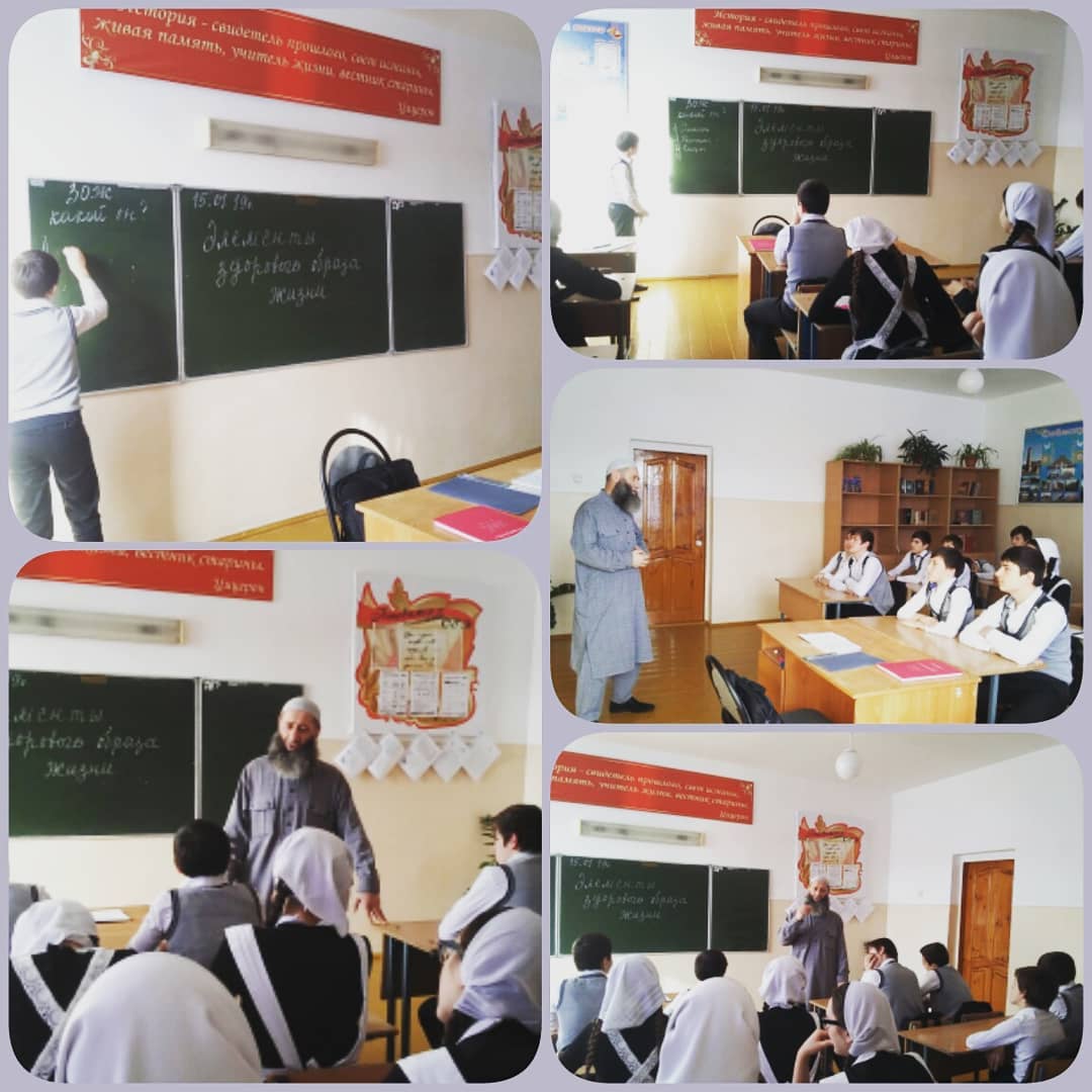 16.01.2019С целью формирования представления о здоровом образе жизни, о факторах, влияющих на духовное и физическое развитие; о жизненных ценностях, о последствиях пагубных привычек, индивидуальной системе поведения; воспитания чувства ответственности за своё личное здоровье и здоровье окружающих педагог дополнительного образования по ДНВ Гумаков У.А.провел с обучающимися 5-8 классов беседу на тему "Здоровый образ жизни - какой он?", "Элементы ЗОЖ".