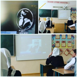 29 января педагог по ДНВ Гумаков У.А. провел с обучающимися 8 класса лекцию на тему "Жизни устаза Кунта- Хаджи Кишиева" с показом видео о зияртах Кунта - Хаджи Кишиева.
