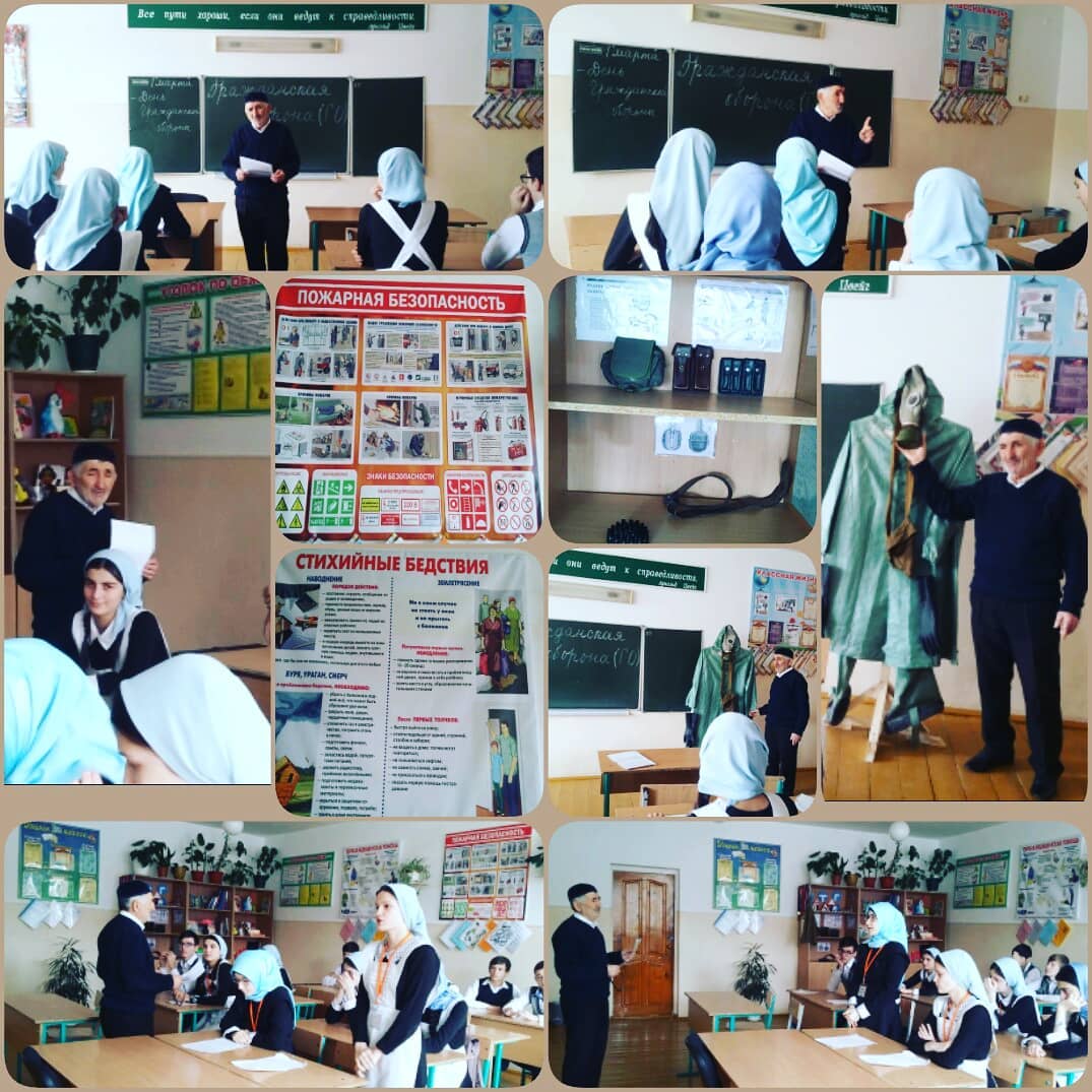 02.03.2019Сегодня 1 марта 2019 года учитель ОБЖ Ахмадов С.Р.провел открытый урок по основам безопасности жизнедеятельности по теме: "Гражданская оборона". Учитель рассказал детям когда была создана и как называлась общесоюзная система противопожарной обороны, и в каком году была переименована в гражданскую оборону. Гражданская оборона (ГО) - это система мер, направленных на подготовку к защите и защиту населения, материальных и культурных ценностей на территории РФ от опасностей, возникающих во время военных действий.Цель урока: познакомить учащихся с историей возникновения Гражданской обороны в России, функциями Гражданской обороны, с руководителями ГО, с задачами ГО и действиями населения в военное и мирное время.