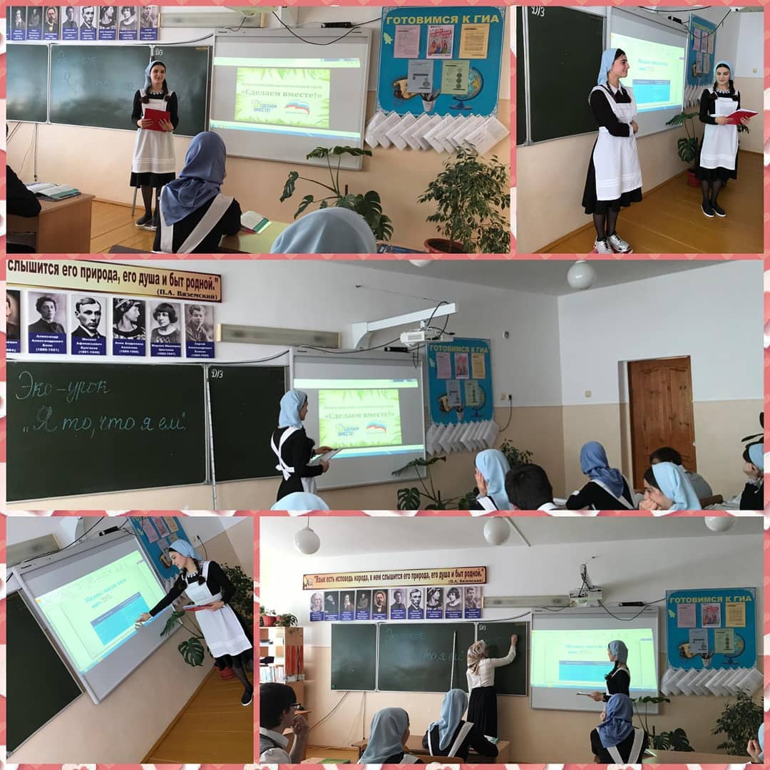 08.04.2019г.Сегодня в МБОУ "СОШ с.Чишки" в рамках акции "Сделаем вместе" лидер акции "Здоровое питание-активное долголетие" ученица 9 класса, Хасанова П.Х провела эко урок , "Я то, что я ем".